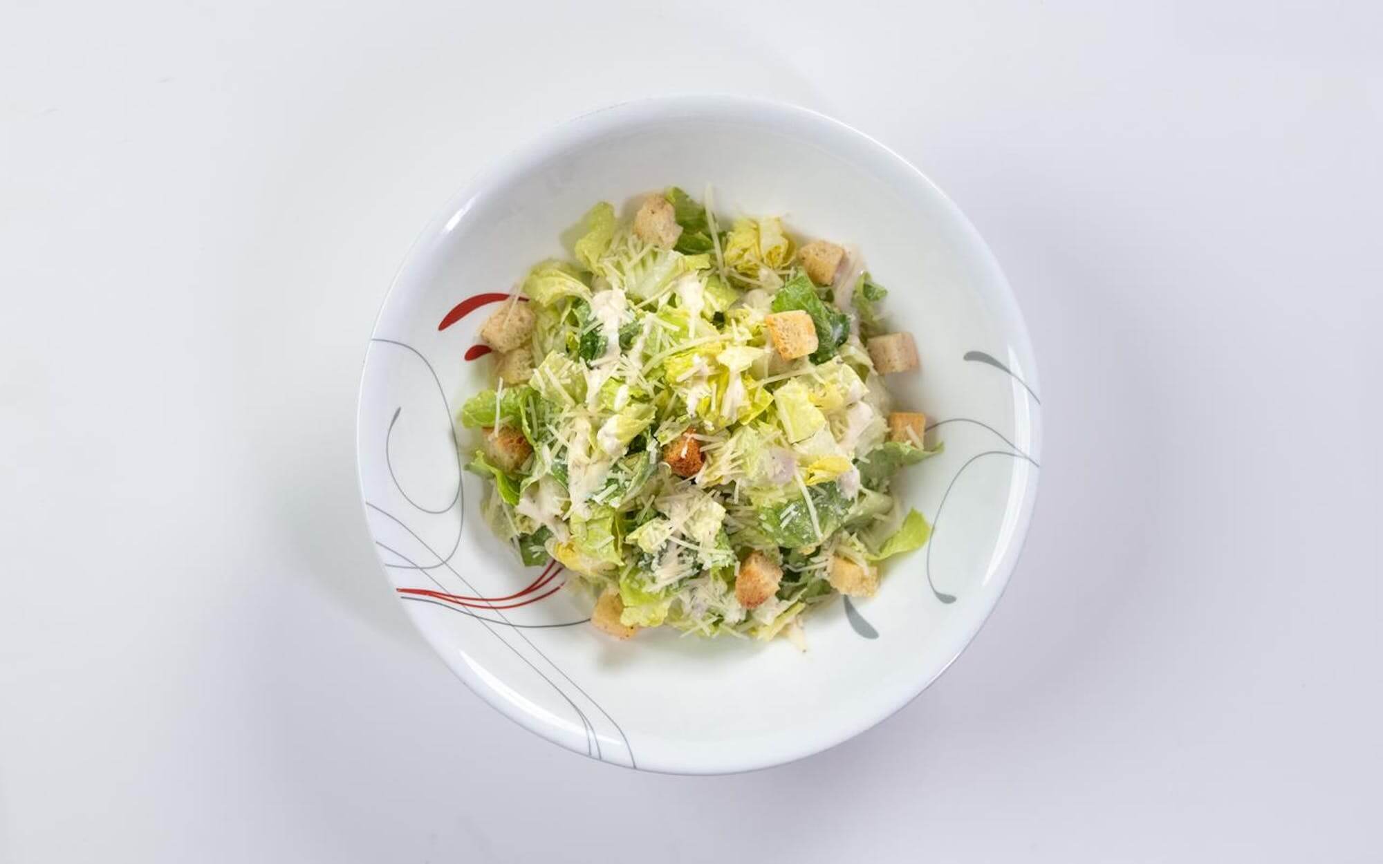 Romaine heart lettuce, croutons, parmesan, dressing.